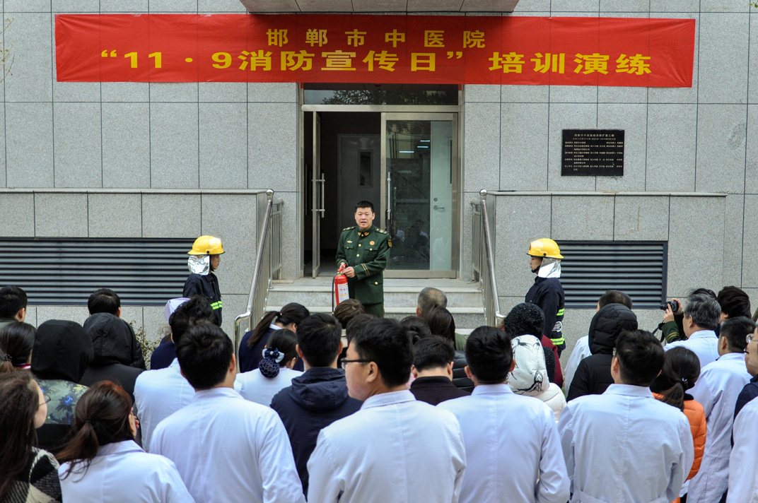 11月9日下午,在第26个全国消防安全宣传教育日当天,我院举办了消防专题培训演练。医院邀请邯山区消防大队技术人员到场指导,给各科消防员讲解了消防安全的“四个能力”及灭火器的正确使用方法。之后医院微型消防站消防员身着制服现场进行了灭火演示,各科消防员实地灭火器操作人人过关。医院领导、各科主任及各科室消防员60余人参加了此次的培训演练。(宣传科 保卫科)