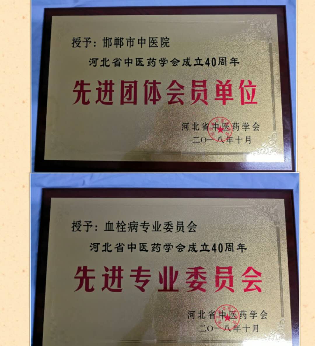 为了树立典型、表彰先进,进一步推动学会建设和中医药学术发展,10月20日上午,河北省中医药学会七届二次理事会暨学会成立40周年表彰大会在石家庄召开。我院荣获河北省中医药学会“先进会员单位”, 授予马登斌院长任主委的“河北省血栓病专业委员会”为“先进专业委员会”。同时马登斌院长、治未病中心杨晓庆主任、周围血管病科韩书明、武洪方主任、老年病一科王玲玲主任、肛肠科宋立峰主任分别荣获“先进工作者”、“先进会员”光荣称号。(治未病中心)