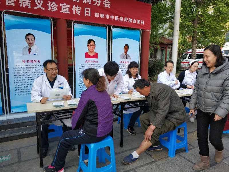“中华中医药学会周围血管病分会常委扩大会”决定,为了宣传周围血管病防治知识,定于每年4月16日及10月16日为“周围血管病义诊宣传日”,从2019年开始在全国主要城市范围内开展“周围血管病义诊宣传日”。 邯郸市中医院周围血管病科为响应这一号召,于2019年4月16日开展了“周围血管病义诊宣传日”健康公益义诊活动。义诊于9:00正式拉开开始,就诊的患者络绎不绝,整个义诊场面火热而有序。前来就诊的很多患者都是慕名而来,韩书明主任认真接待每一位前来诊治的患者,仔细询问病情,详细地解答每一位患者提出的问题。四诊合参,辨证施治,为患者制定个性化方案。周围血管科的护理团队为患者朋友进行血压测量、健康宣教。 义诊结束后由武洪芳中西医结合主任医师为住院患者及家属进行了题为《预防腿梗,从我做起》健康知识讲座,动脉硬化性闭塞症是常见的下肢动脉疾病,由于肢体远端供血不足,表现为初期的间歇性跛行,休息后可缓解,后期症状加重,并会出现静息痛、肢端坏疽。武主任结合自己多年外周血管病临床经验,细致深入地讲授了这一疾病的概念、发病原因、中医诊治及日常防护要点等内容,讲课结束后,现场患者纷纷围绕武洪芳副主任身旁,护士站俨然成了诊室,武主任一一耐心的解答他们遇到的问题。通过这次周围血管病义诊宣传日活动,让广大患者了解了周围血管疾病的相关养生及防护知识,得到了义诊群众及住院患者的赞许,纷纷建议此次活动应多多举行,以让更多的人受益!(周围血管科 供稿)