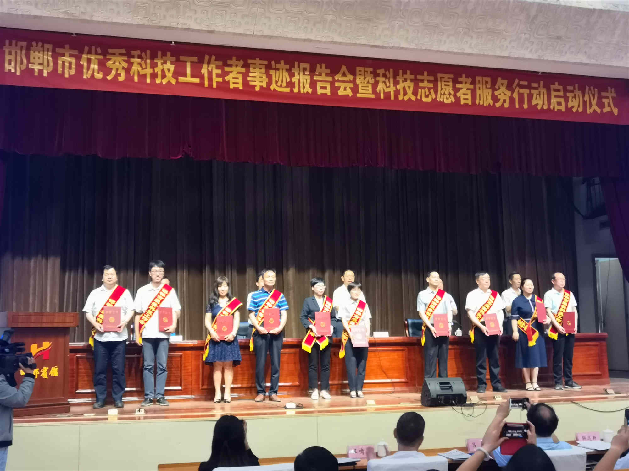 2019年5月30日上午,邯郸市“全国科技工作者日”主场活动——邯郸市“礼赞共和国 追梦新时代”最美科技工作者事迹报告会暨科技志愿服务行动启动仪式在邯郸宾馆召开。邯郸市市委副书记薛永纯,邯郸市政协副主席、邯郸市科协主席李海平等领导出席会议。参加此次会议的还有市委办公厅、市科协、市科技局、市文明办等单位负责同志,我市荣获2019年度邯郸市“最美科技工作者”称号的获奖者,各县(市、区)科协主席,各市级学会秘书长(会长或副会长)等共计300余人。邯郸市中医药学会会长高社光,常务副会长马登斌,副会长赵丽娜,秘书长王红霞也参加了本次会议。 会上授予邯郸市中医院院长、邯郸市中医药学会常务副会长马登斌等30名同志邯郸市2019年度“最美科技工作者”先进个人称号并予以表彰。 会上邯郸市科技志愿者支队和各分队启动并组建。会议还邀请了六位“最美科技工作者”代表,围绕“礼赞共和国 追梦新时代”进行了先进事迹报告。大会宣读了《致全市科技工作者的倡议书》。 市委副书记薛永纯发表重要讲话,既表达了对全国第三个科技工作者日的节日问候,又对广大邯郸市科技工作者提出新的工作要求,激发广大科技工作者投身新时代全面建设经济强市、美丽邯郸的内生动力。随后全体与会人员集体观看了科技报国电影《飞天冲豹》。 这次会议进一步激发了全市科技工作者投身科技创新和建设科技强市的热情。参会人员体会到了科技工作者心系科技、服务人民的高尚情操,学习了他们弘毅报国的政治热情和勇攀科技高峰的创新精神。广大科技工作者要携手并肩,凝心聚力,在市委、市政府的正确领导下,求真务实、扎实工作,为建设宜居宜业宜游的富美邯郸贡献更大力量! (邯郸市中医药学会 供稿)