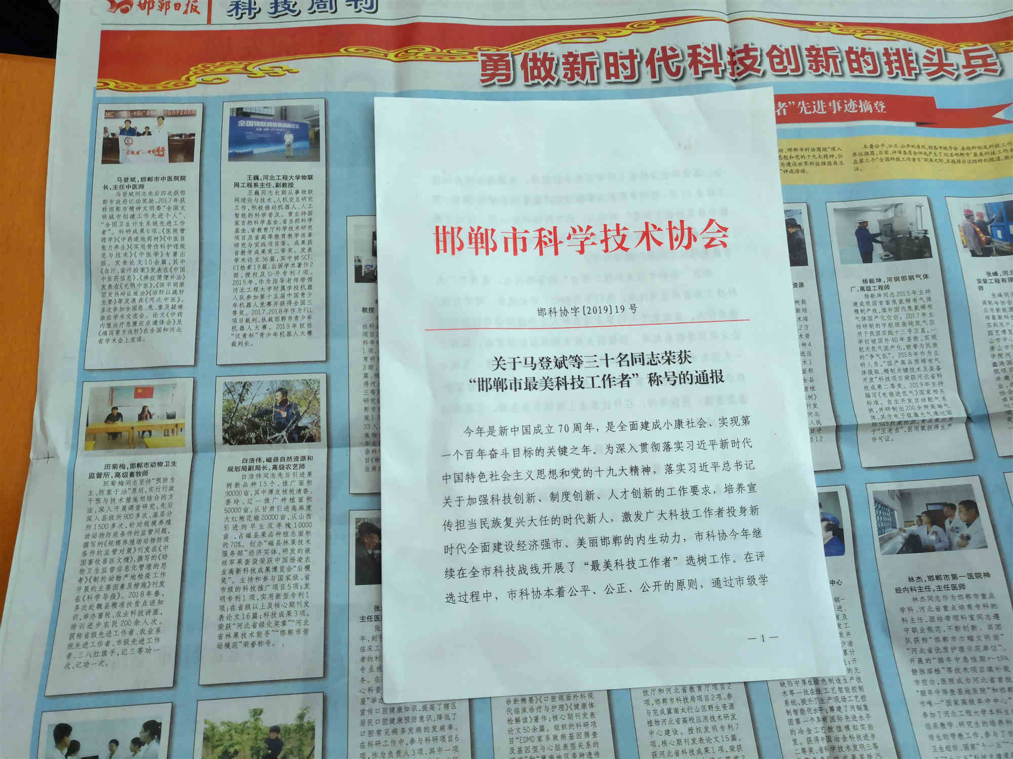 马登斌院长荣获 “邯郸市最美科技工作者”称号