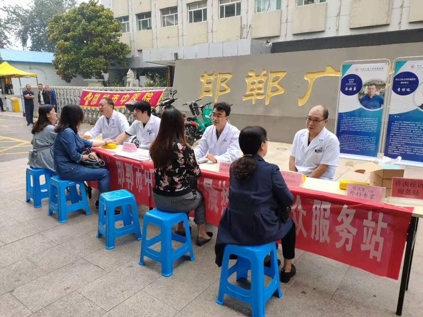 9月20日清晨,我院党委书记、院长马登斌,党委委员、纪委书记李国军走进邯郸广播电视台《清晨热线》栏目,向全市人民介绍医院的基本情况解答群众来电。马院长、李书记分别入座第一直播间和第二直播间,接听群众来电,解答大家提出的各种问题。同时,在市广播电视台门前,由医院党委委员、副院长钱宏,党委委员、副院长张文玲带队设立了咨询义诊台,受理群众投诉,征求群众意见,并组织医疗专家在现场开展义诊活动,发放健康养生宣教材料,接受过往群众健康咨询。 (监察室 供稿)