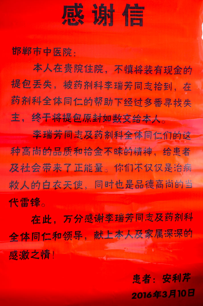 药剂科职工李瑞芳拾金不昧的事迹,彰显了市中医院职工的高尚道德情操,让病人及家属真正感受到“杏林春暖”。她为医院赢得了荣誉,在此我们要向她学习,为她点赞!我们有理由相信,在诚实诚信可贵精神的鼓舞下,全院职工将会更好地立足岗位,从小事做起,从细节做起,从现在做起,传递正能量,为病人提供更好的服务,为医院的发展做出更大的贡献。(药剂科 宣传科)