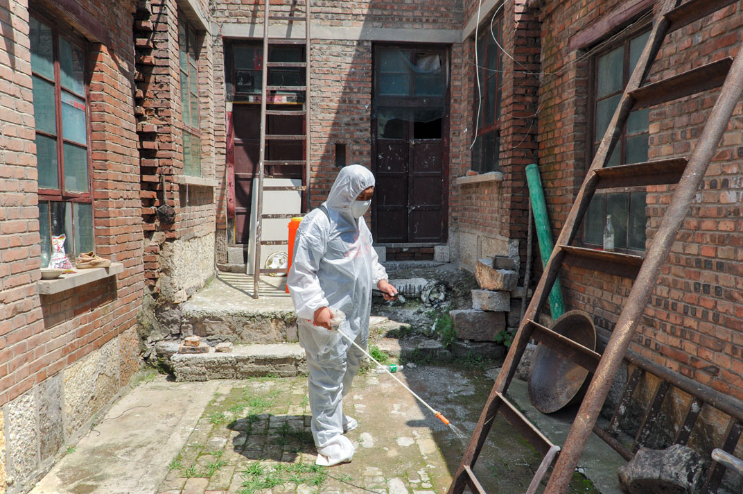 7月26日早晨,市中医院接到市卫计委赴涉县灾区执行消杀防疫任务后,及时召开党委会和全院中层干部会议,迅速召集54名消杀队员,在马登斌院长和李国军书记的亲自带领下,组成了17个防疫消杀小分队,由医院自备干粮,分乘两辆大巴车于8:30赴涉县更乐镇灾区。 在涉县卫生防疫站进行了简单的对接后,由更乐镇卫生院院长带领驱车赶往十公里外的更乐镇,稍作休整,在当地村干部的带领下,我院消杀队员冒着三十多度的酷暑高温,徒步赶往更乐镇的15个自然行政村,对每村的水窖和厕所等易感部位进行了消杀作业。据不完全统计,当日,市中医院消杀队员在更乐镇对(三合村、张一街、张二街、张三街、张四街、张五街、大洼村、江家村、前河村、西寂寥村、东石村、后河村、南漫驼、江新村、满市口村)的3180多个水窖、3070个厕所、45个垃圾堆放点进行了消杀,消杀面积达30000多平方米、覆盖全镇7900多人口。