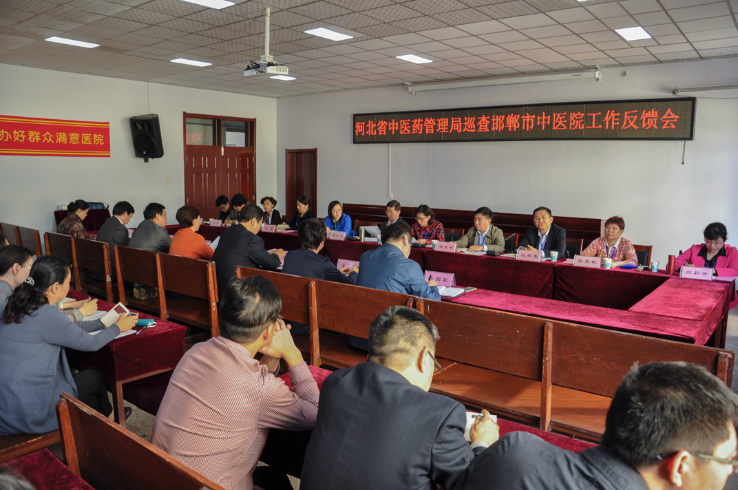 10月11日至14日,由河北省中医药管理局组织的大型中医院巡查组深入我院,对医院反腐倡廉建设、坚持公立医院公益性、发挥中医药特色优势、医院管理、医院服务等方面的工作开展全面巡查。省中医药管理局副局长胡永平、邯郸市卫计委副主任胡书芬出席汇报会和巡查工作反馈会并做重要讲话。 巡查组分为管理、临床、药事、护理等四个工作组,采取听取汇报、查阅资料、列席会议、实地查看、问卷调查、个别访谈、暗访患者、模拟应急演练等方式,对照国家中医药管理局《大型中医医院、中医专科医院巡查细则》内容对医院进行了全面的检查。 14日,巡查组对检查情况进行了反馈,认为医院高度重视大型中医院巡查工作,印发了实施方案,将迎接巡查工作作为巩固三级甲等中医院及医院持续改进的重要抓手,围绕维护医院公益性质,突出中医药特色、内涵质量建设、改善医疗服务、健全惩防体系等重点,认真组织自查整改,各项工作成效显著。反馈中,巡查组指出了医院在党风廉政建设、发挥市级中医院中医药特色优势、人才培养与梯队建设、临床科室管理、进一步改善医疗服务行动计划、治未病中心建设、临床药学工作、中医辨证施护和技术创新等9个方面的工作亮点。同时,巡查组也对医院今后的工作提出了意见和建议,希望医院进一步加强对重点部门和关键岗位人员的监督,加强医院信息化建设,出台制度留住名老中医,加大支持力度发挥学科带头人、研究生等高端人才的作用,进一步加强“治未病”建设,以及加强对优质护理服务工作的保障和支持。 邯郸市中医院院长马登斌在反馈会上进行了表态发言,市卫计委副主任胡书芬讲话。最后,省中医药管理局副局长胡永平作了重要讲话,对邯郸的中医药发展和邯郸市中医院工作进行了充分肯定,要求医院要抓住千载难逢的机遇,坚定机遇意识、责任意识、创新意识,按照国家中医药管理局对中医药发展的定位,做好医院发展规划,并积极投身医改,努力打造区域中医诊疗中心,使医院各项工作工作再上新台阶。
