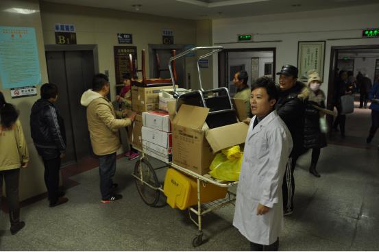 12月15日,我院老年二科由原老病房楼搬迁至新病房楼二期三层,周围血管病科搬迁至新病房楼二期七层。院党委号召机关第一党支部和机关第二党支部全体党员参加义务劳动,协助两个临床科室整体搬迁。上午9点,院党委书记、院长马登斌,院党委委员、副院长王莉,院党委委员、纪委书记李国军来到新病房楼现场督导,并以机关第一党支部普通党员的身份参加了义务劳动。党办室、院办室、宣传科、财务科、核算办、网络信息科、人事科、医务科、护理部、体检科、农合医保科、药剂科、保卫科、总务科、基建科等机关职能科室的全体党员40余人参加了这次活动。(党办 宣传)