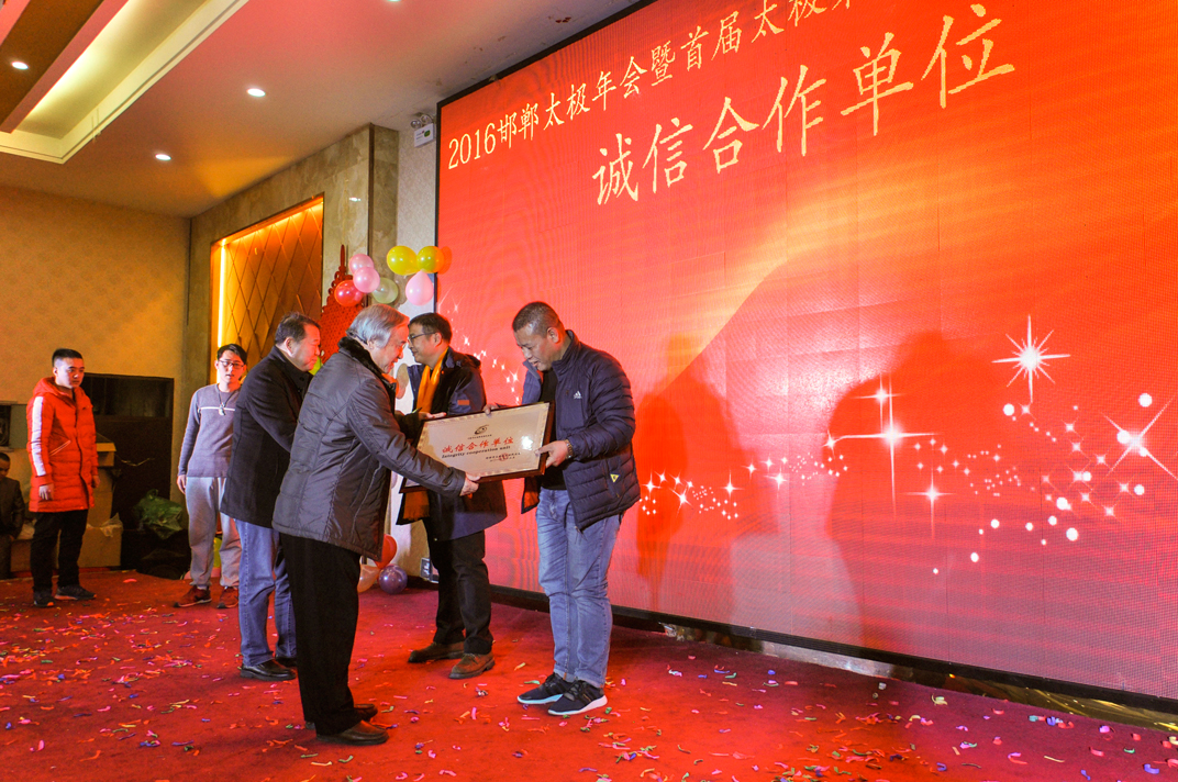 12月24日上午,2016邯郸太极年会暨首届太极荣誉称号授名颁奖盛典在天云会馆召开。邯郸市中医院作为邯郸市太极拳促进会的理事单位参加了此次年会。马登斌院长当选为邯郸市太极拳促进会副会长,市中医院被授予诚信合作单位。