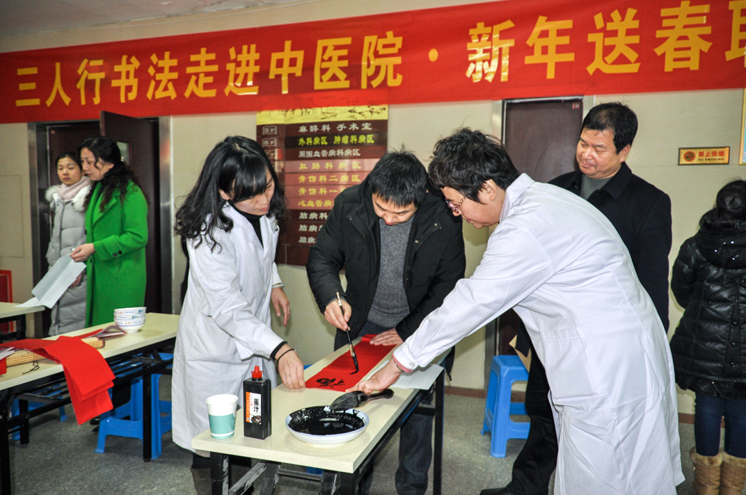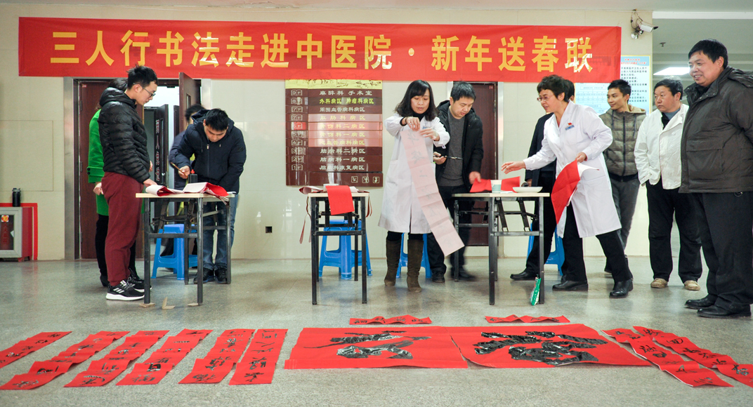 农历新年马上就要到了,为丰富医院职工文化生活,增添春节节日气氛,1月10日上午,我院邀请邯郸三人行书法社的书法老师,举办“三人行书法走进中医院·新年送春联”活动。书法老师们热情高涨,挥毫泼墨,写出一副副充满节日祝福的春联,并向来院就诊的患者及医院职工免费赠送。活动共送出春联近百副,在春节即将到来之际,我院借次机会提前为大家送上节日的祝福。(宣传科)