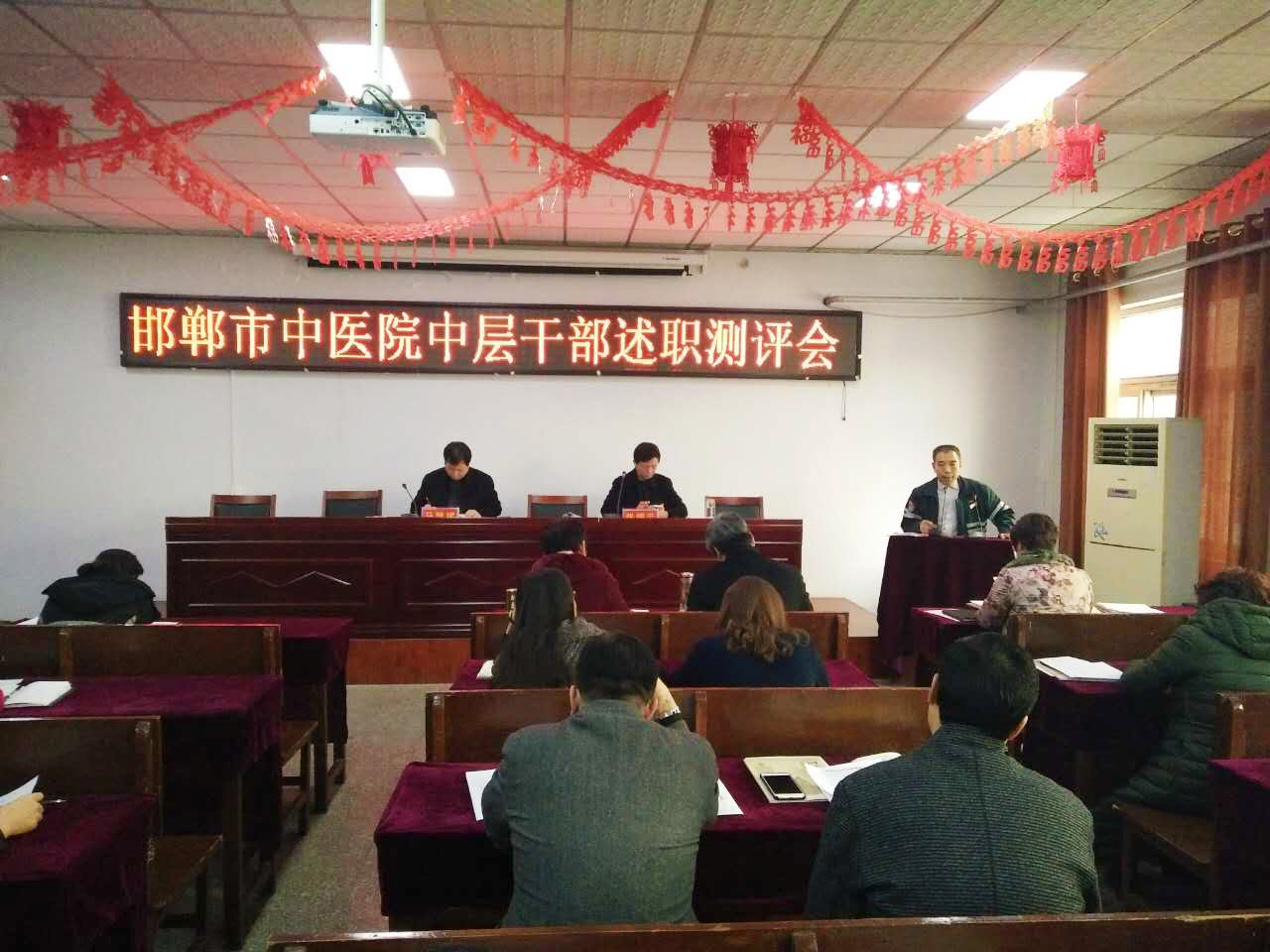 2017年1月18日下午,市中医院2016年度干部述职测评会在机关四楼会议室召开,医院领导班子成员及全体中层干部近80人参加了会议。26个临床科室,10个医技科室和25个机关职能科室负责人分别就一年来的工作进行了述职。会议由副院长张恒云同志主持。 临床科室主任围绕科室管理、学科建设、人才培养、医疗安全管理、教学、科研等方面对各自科室工作进行了全面总结。大家立足岗位,对过去一年工作总结盘点;医技科室主任围绕科室管理、各种检查设备日均检查人数,同比增加或减少情况述职;机关职能科室负责人围绕2016年度工作要点,从德、能、勤、绩、廉等方面,进行了全面客观地总结分析和汇报。各科有亮点,有不足,有感悟,有困惑,还有对新一年工作的思考、希望,展示了过去一年来各科室的不同风采。述职汇报后对我院61名中层干部进行了客观、公正的民主测评。 会议最后,马登斌院长进行了总结发言,他说:“首先感谢大家,各位都很辛苦。述职很有必要,是各科对一年来科室工作的汇总,我听后很有感触,各科有亮点也谈到了不足,比如脑二科注重学习,外聘北京专家来院坐诊;骨科、心肺科、放射科等新技术的开展等。总的来看还可以,但是大部分科室只讲到收入,而没有讲支出,这是一大块,也是关键,同样要讲。各科一定要树立节约意识,要有安全意识。节后我们将召开职代会和表彰会,做的好的科室要在会上介绍经验,共同学习提高。各科一定要谋划好新的一年的工作,立足发展攻坚克难,就像习总书记在2017年元旦致辞里说的那样——要撸起袖子干,使我们医院的各项工作迈上一个新的台阶”。(宣传科)