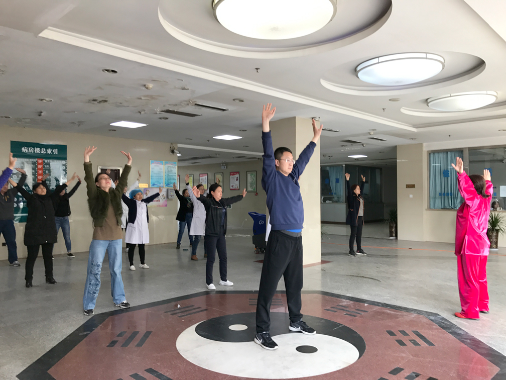 我院第三届第一期太极养生功培训班于4月10日下午正式开班了。本次养生功培训的主要内容为杨氏太极拳,特邀邯郸市太极拳促进会副会长、杨式太极拳第七代传人赵凤敏以及邢晓东、杨宝财老师亲自授课。此次活动受到大家广泛关注,来自临床、医技、机关职能科室的医务人员、患者及家属积极参与,王莉副院长、王红霞副院长、李国军书记亲临现场与大家一起学练。 太极拳是我国优秀的传统文化,将哲学、中医学、武术和艺术融为一体。太极拳运动不仅有抗衰老、祛病、防身、护卫的功效,还具有调整心态平衡、修心养性的作用。杨晓庆主任向大家讲解了练习太极拳对身体的益处,通过神经系统的放松来缓解和释放压力,刚柔并济,锻炼四肢百骸、舒筋活络的同时,又能通过呼吸与动作间的协调配合,对内脏加以按摩锻炼,达到修身养性的目的。太极拳对身体机能的提高主要体现在:①提高人体肌肉的强度和耐力,改进各个关节的柔韧度;②提高人体的心肺功能,增加各个器官的获氧量;③疏通人体经络和血管,改善微循环,促进淋巴系统的新陈代谢,提高机体的免疫力。 习练太极拳追求人本身内外气质的修为,强调的是身心协调,天人合一,进一步达到强身健体的目标---“健康第一”, 切实提高全民健康素养。 今后我院太极拳培训将进入常态化,培训时间:每周一、周五,培训地点:太极拳养生文化研修基地(住院楼一楼大厅)