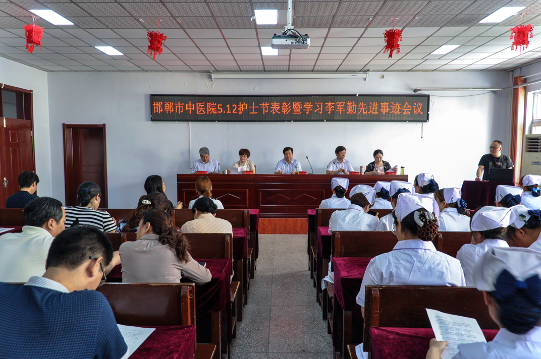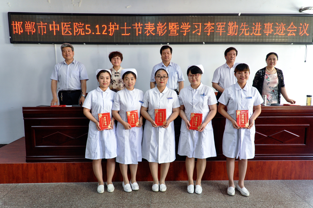 5月11日下午,我院在行政办公楼四楼会议室召开了“邯郸市中医院5.12表彰会暨学习李军勤先进事迹会议”。院领导马登斌、张恒云、王莉、王红霞、李国军出席会议,各科主任,护士长、优秀护士、优质护理服务标兵以及新入职的20名护士等100余人参加了会议。会议由王红霞副院长主持。 会上,张恒云副院长宣读了《关于表彰2016年度优秀护士、优质护理服务示范科室及标兵的决定》;院领导为获奖人员颁发了奖牌及证书;优秀护士长商淑慧及优秀护士韩朋朋等分别代表受表彰人员发言;王红霞副院长传达了5月9日市里召开的李军勤同志先进事迹报告会的内容,并向全院发出“创文明城市,做健康使者,学习李军勤争做最美中医人的倡议书”,学习她情系患者,时刻以病人为中心的仁爱精神;学习她大爱无私,真情谱写动人篇章的奉献精神;学习她精益求精,争创护理一流业绩的敬业精神;学习她创新管理,传播团队正能量的创新精神。 会上,还举行了由各科护士长向20名新入职护士的授帽仪式,护理部林芸主任带领新护士进行了入职宣誓。马登斌院长对全院的护理工作者表示了节日的祝贺。