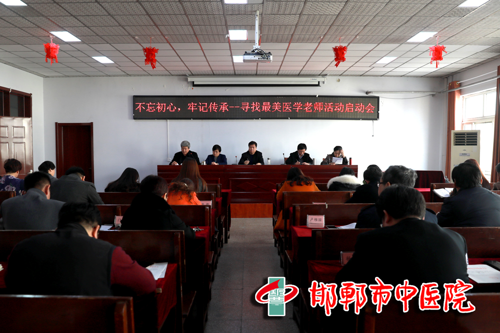 为深入学习宣传贯彻十九大精神,认真落实省市卫生计生工作会议工作部署,大力弘扬白求恩精神和大医精诚无私奉献的职业精神,推动我院医学重点学科建设和人才队伍建设发展,提升医疗技术服务能力,2月28日下午,我院召开了“不忘初心,牢记传承——寻找最美医学老师”活动启动会。 会上,宣传科传达了市卫计委2月12日上午召开的全市医学重点学科建设推进暨“不忘初心,牢记使命——寻找最美医学老师”活动启动会会议精神,以及2月26日市卫计委专题调度会议精神;分管宣传工作的纪委李国军书记在会上宣读了《邯郸市中医院关于在全院开展“不忘初心,牢记传承——寻找最美医学老师”活动的实施方案》;成立了以马登斌院长为组长的活动领导小组。 马登斌院长强调:尊敬师长是中华民族的传统美德,我们中医人更要提倡尊师重教。活动方案有了,下一步我们就要围绕活动主题按阶段做好活动的分步骤实施,精心组织,细化安排,要将宣传工作贯穿活动的始终,力争把为邯郸市医学事业发展做出历史性贡献的老一辈专家、学者;为邯郸市医学重点学科、重点发展学科、特色专科等学科建设做出突出贡献的优秀专家;为邯郸市医疗、教学、科研等方面做出贡献的优秀老师选出来、推出去。推动全市卫生计生重点工作再创新成绩。