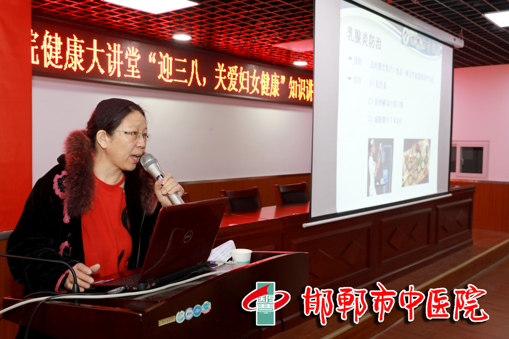 阳春三月,在这个全球妇女共同的节日——三八国际劳动妇女节来临之际,我院举办了“庆三八-关爱妇女健康大型公益活动”。 3月7日上午,在医院北区会议中心,我院妇科主任裴凤兰就“女性乳腺及生殖系统相关疾病”进行了健康讲座。来自社区、基层医疗机构及社会群众等100余人聆听了此次的讲座。这也标志着我院治未病中心按照常规化举办的“健康大讲堂活动”,2018新春第一讲正式启动。 本次公益活动以“关注妇科疾病、关爱妇女健康”为主题,提倡“及早预防,及早发现,及早治疗”健康理念,向广大妇女普及科学养生理念和健康的生活方式,提高广大女性对妇科疾病的认知,掌握正确的妇科疾病防治知识,使患者及时得到优质的医疗服务。同时,呼吁社会各界关爱女性健康,传播健康知识。 按照活动的安排,3月8日上午,医院还安排了多名省市级名中医专家,在治未病中心特色诊室为广大女性朋友们进行健康体检、体质辨识诊察,凭《健康大讲堂入场券》免费做乳腺钼靶等妇科项目筛查。 我院专门引进了美国豪洛捷乳腺钼靶摄片机,开展乳腺增生、乳腺癌筛查等新项目,为乳腺疾病患者健康保驾护航。