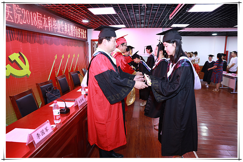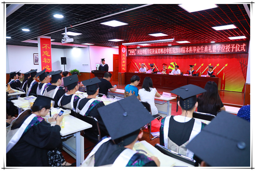 6月29日上午,在邯郸市中医院北区会议室隆重举行了河北中医学院2018届毕业生毕业典礼,出席毕业典礼的领导有河北中医学院副院长张祥竞,河北中医学院中西医结合学院党总支书记丁旭,邯郸市中医院党委书记、院长马登斌,党委委员、副院长王莉,党委委员、纪委书记李国军,原邯郸市中医院副院长、河北中医学院硕士生导师王红霞。科教科全体老师,各科教研室主任,2018届毕业生,部分在院实习生等100余人参加毕业典礼,共同见证了这一激动人心的时刻。